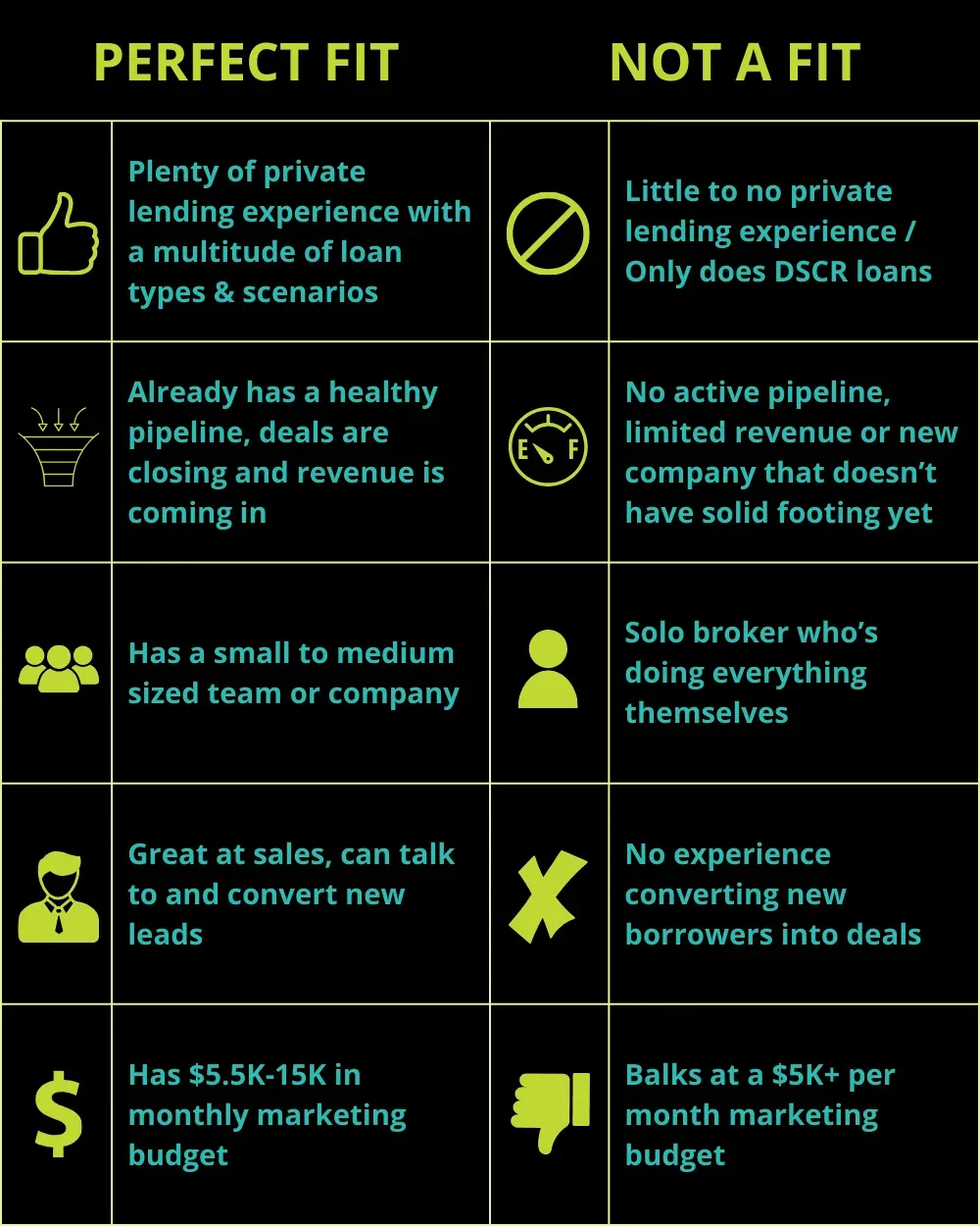 We worked with 100's of private lending brokers...